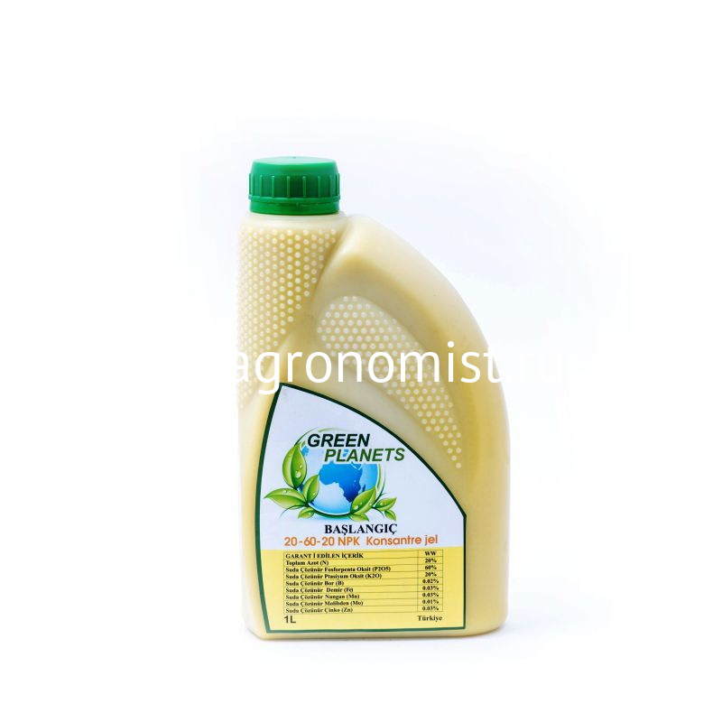 Высокоэффективное концентрированное гелевое удобрение с повышенным содержанием фосфора. Используется для улучшения корнеобразования, цветения и завязываемости плодов у овощных, ягодных и зерновых культур, а также для стимулирования цветения цветочных культур.